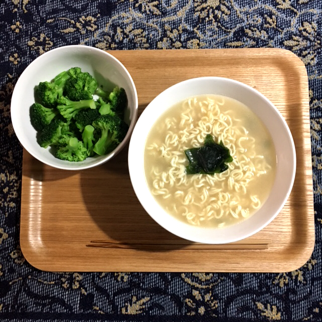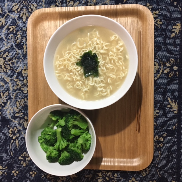 わかめラーメンとブロッコリー