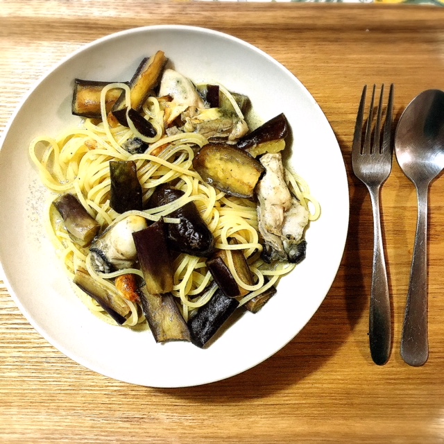 牡蠣と茄子のオイルパスタ