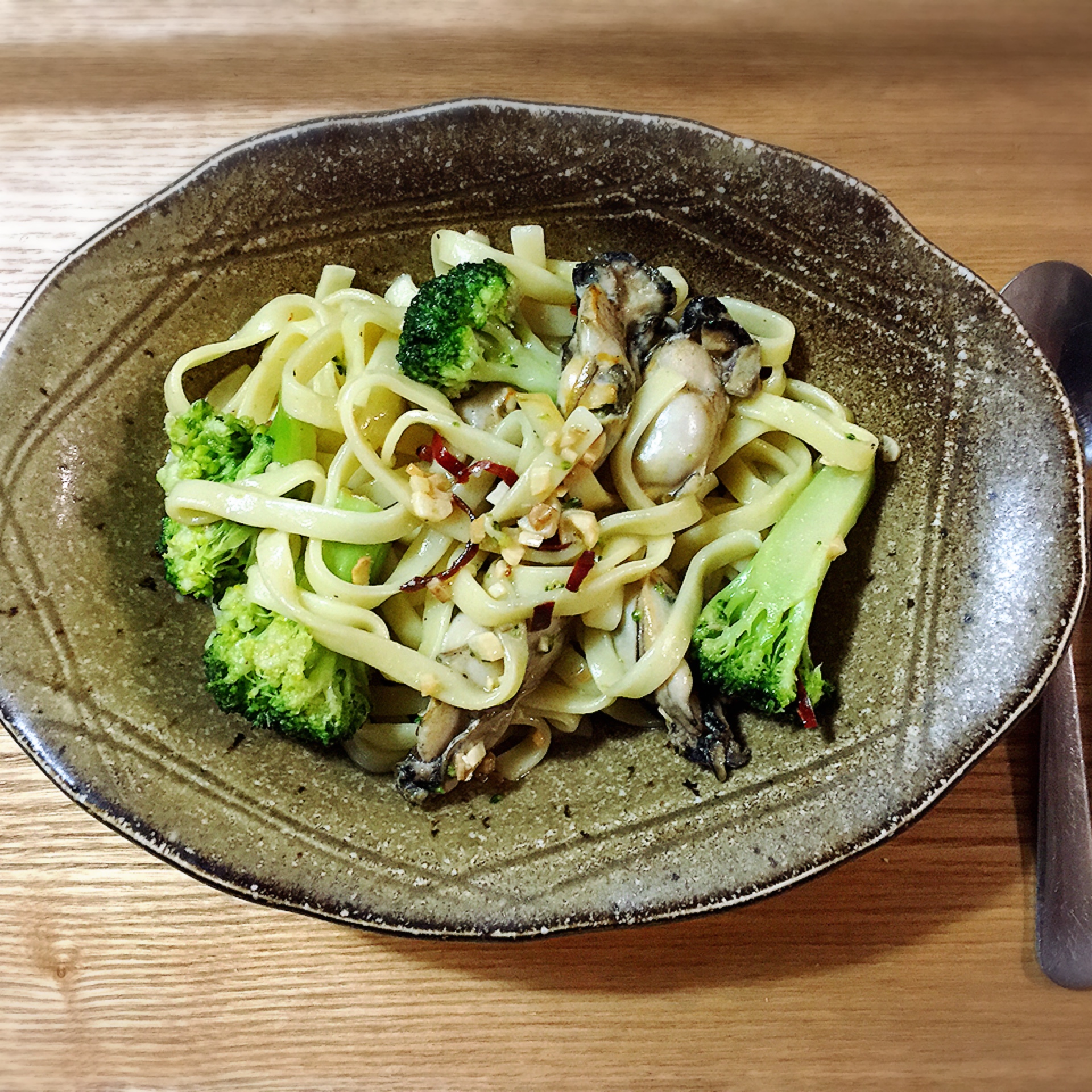 牡蠣とブロッコリーのオイルパスタ